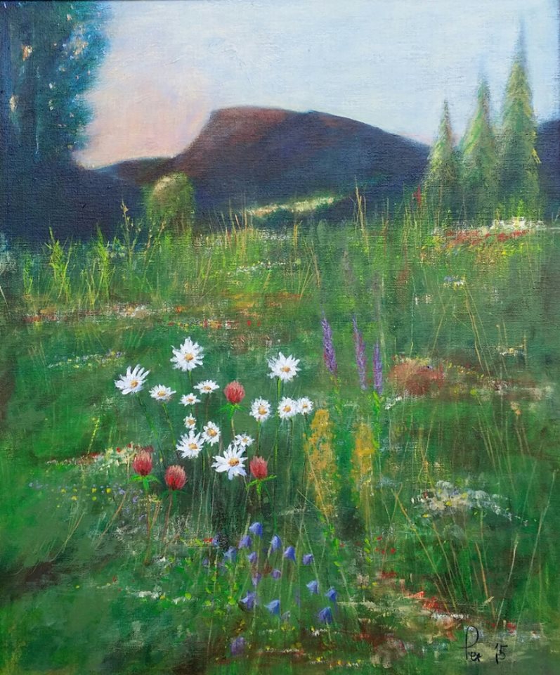 Tidlig morgen over blomsterenga